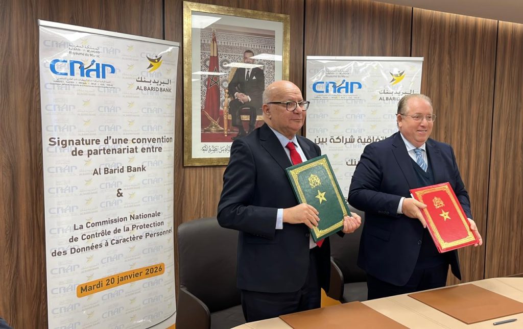 Al Barid Bank et la Commission Nationale de Contrôle de la Protection des Données à Caractère Personnel (CNDP) ont signé, ce mardi 20 janvier 2026, au siège d’Al Barid Bank, une convention d’adhésion de la Banque au programme national « DATA-TIKA ».